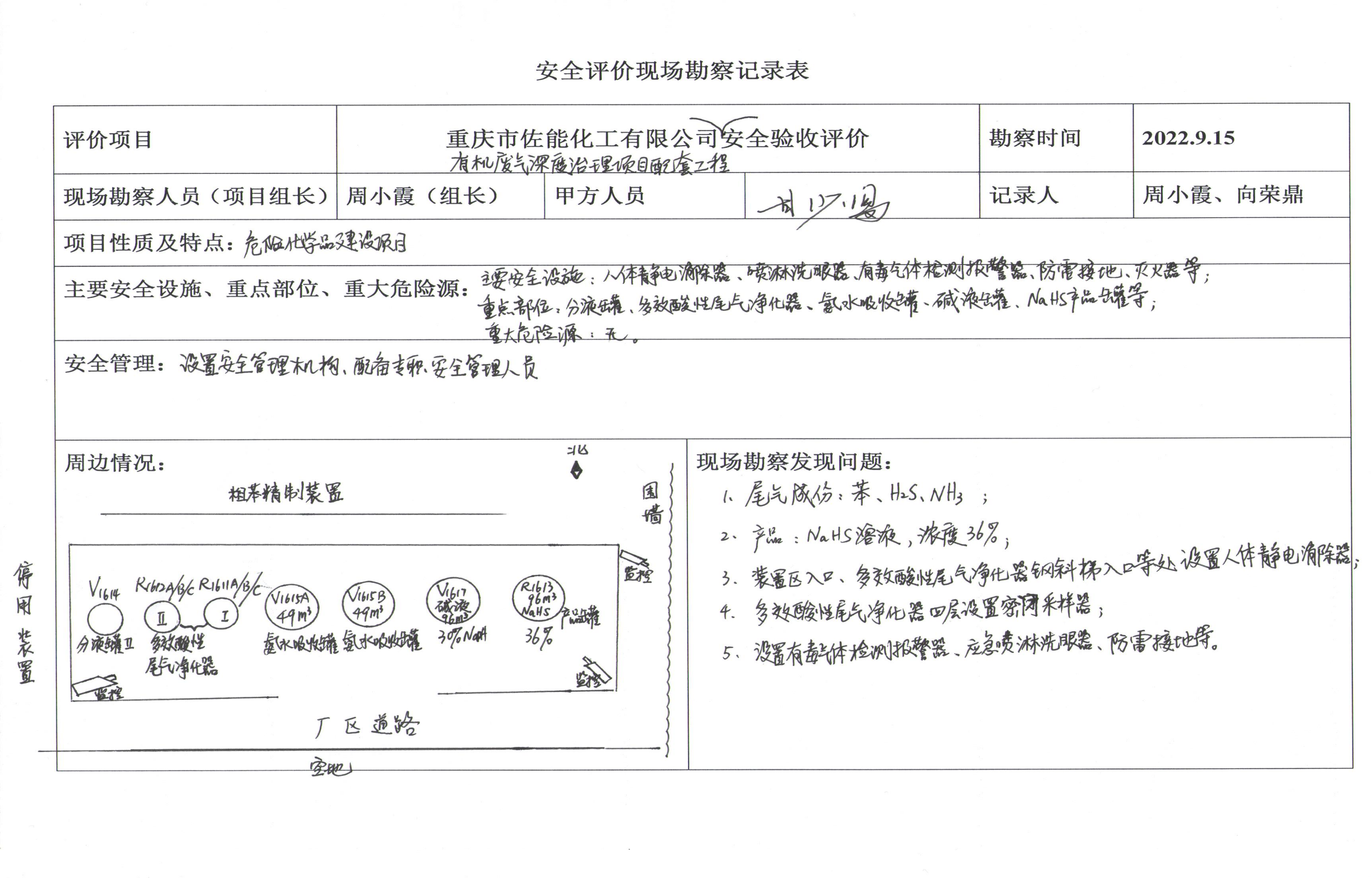 項目名稱 | 重慶市佐能化工有限公司有機廢氣深度治理項目安全驗收評價報告 | 合同編號 | ZN2022-KJ-104 | |||||