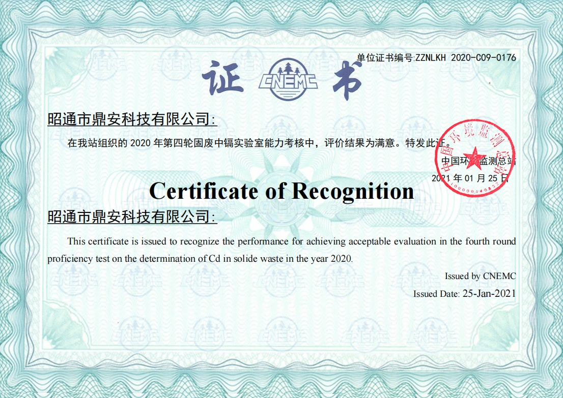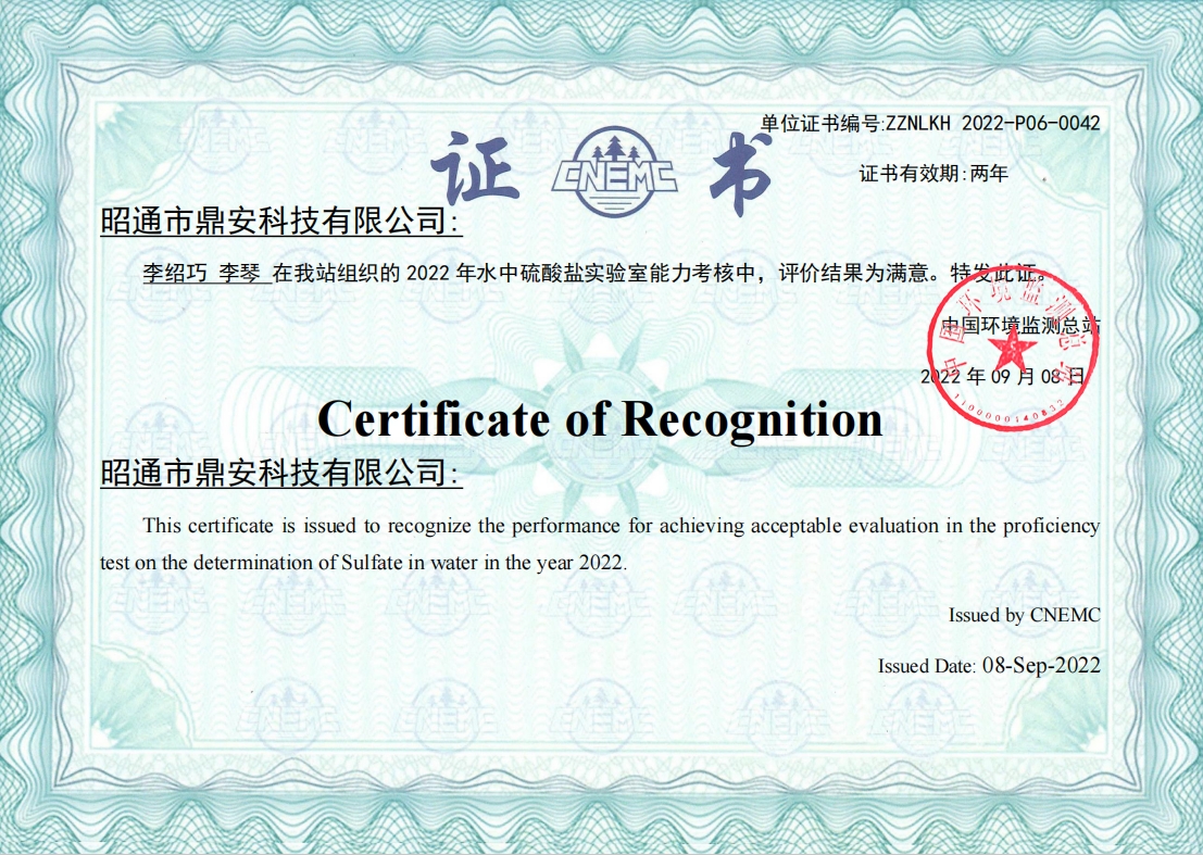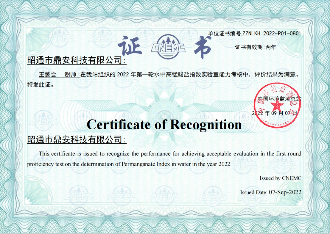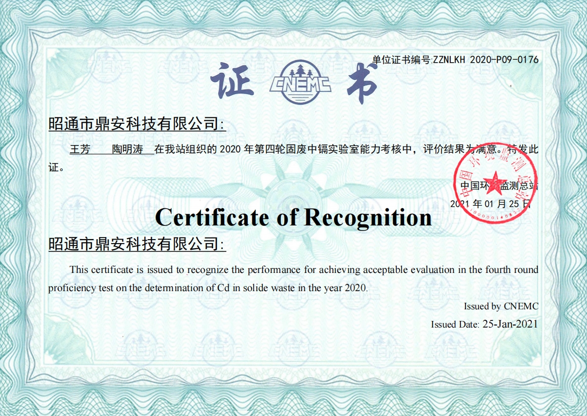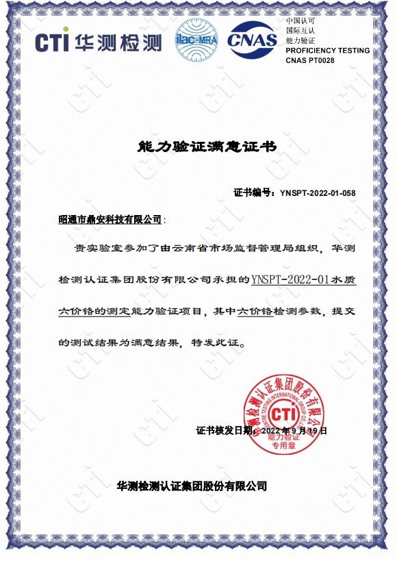 能力驗(yàn)證證書