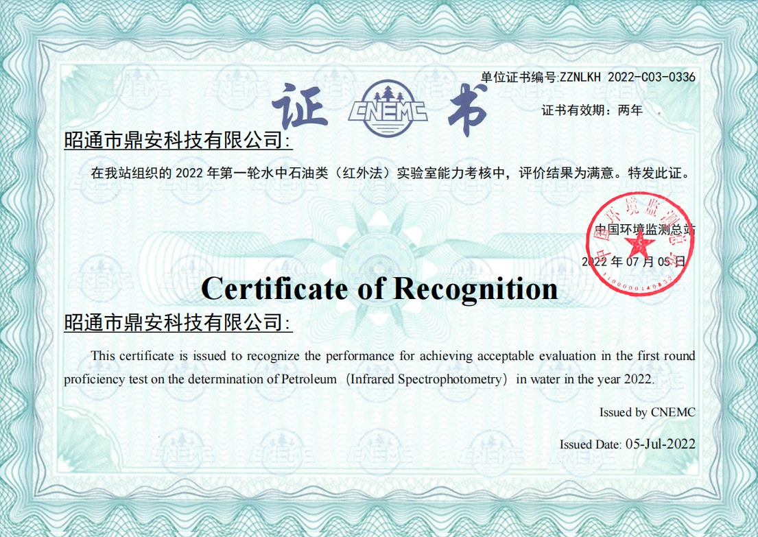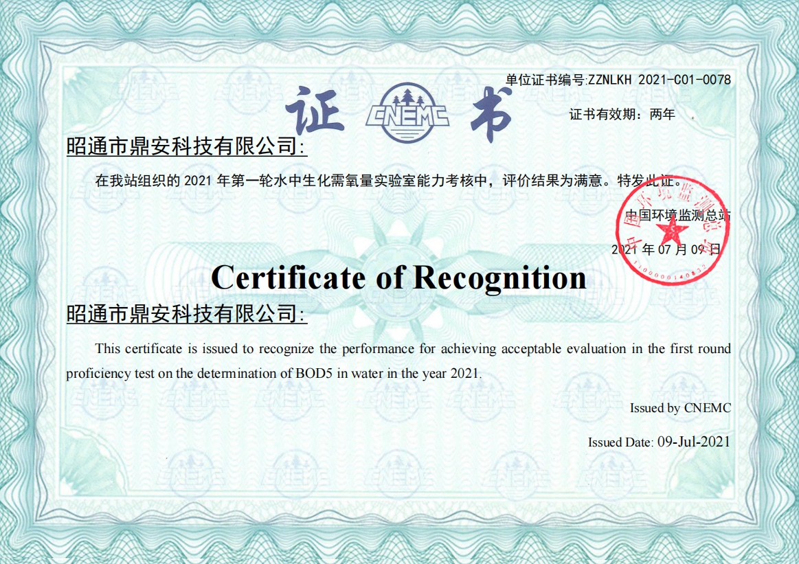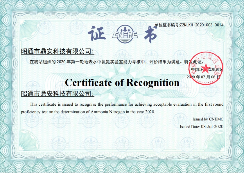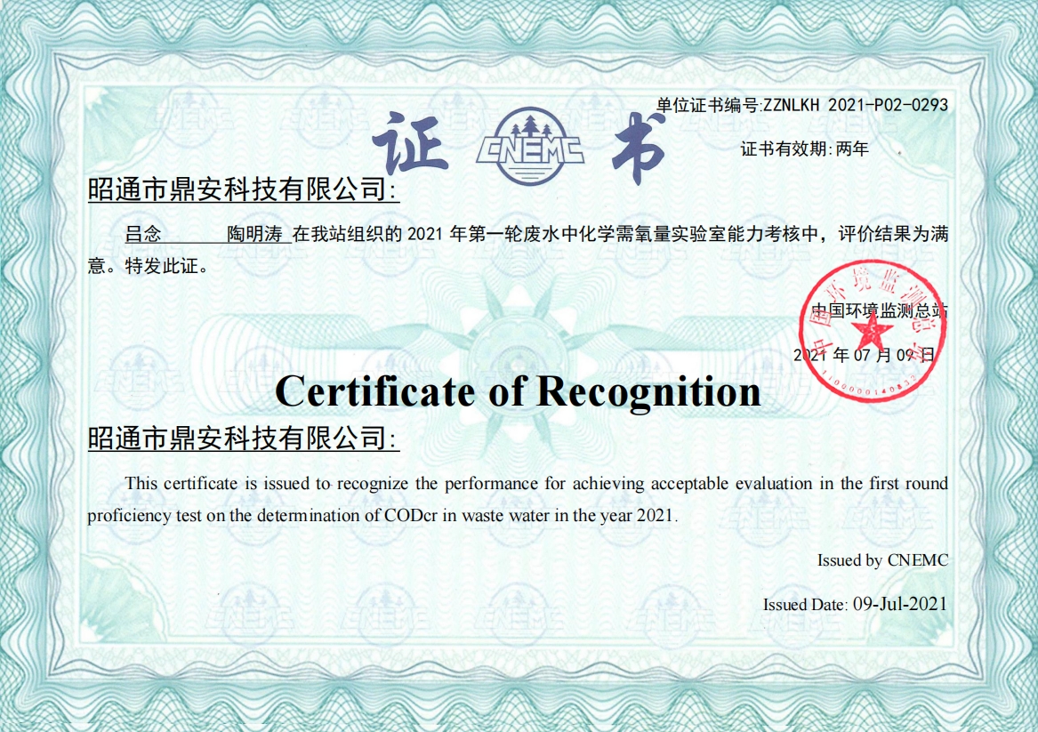 能力驗(yàn)證證書