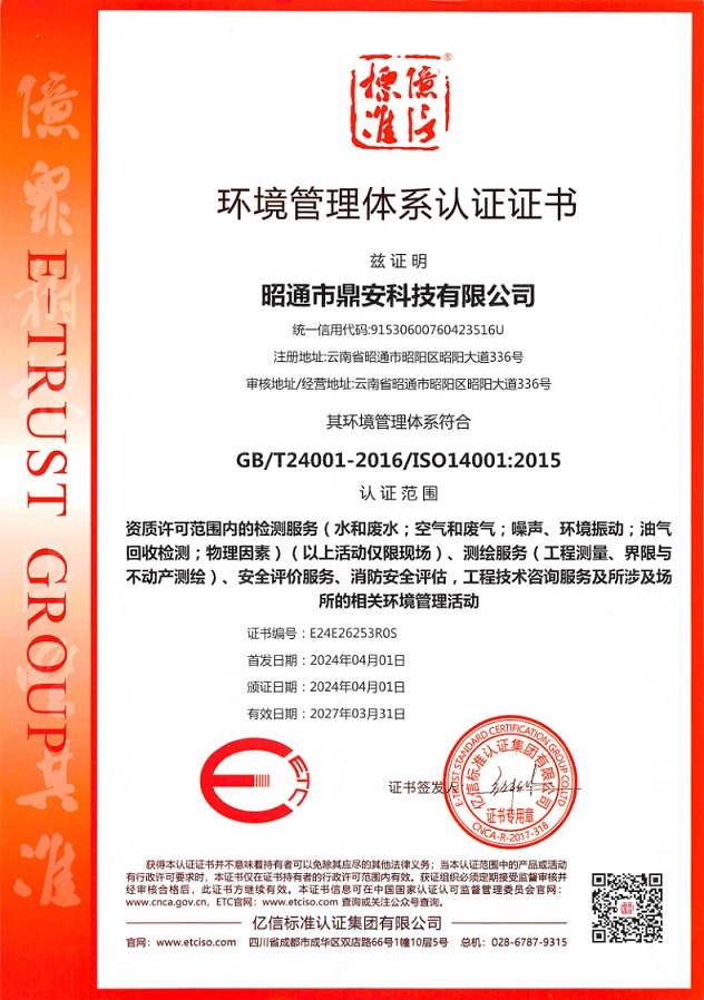 環(huán)境管理體系認(rèn)證證書(shū)
